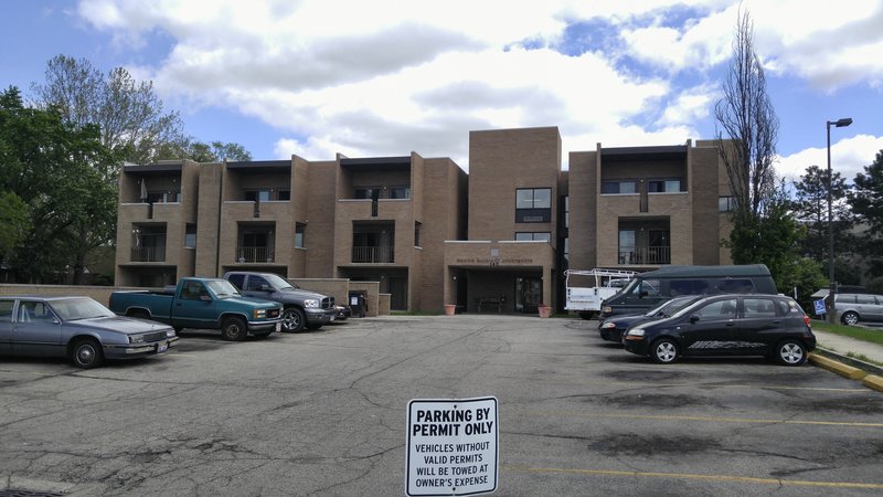 Amenities include; carpet, a private balcony in each apartment, stoves and refrigerator and central heat and air conditioning. A secure entrance on the ground floor, includes an intercom to the outer entrance, from each apartment. This allows residents to screen calls before giving a guest entry into the building. This apartment complex includes a community room where the laundry facilities are located.