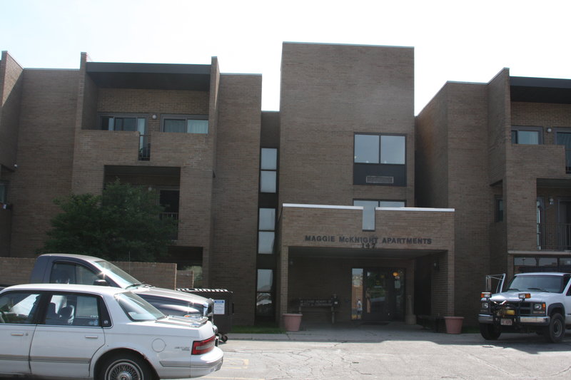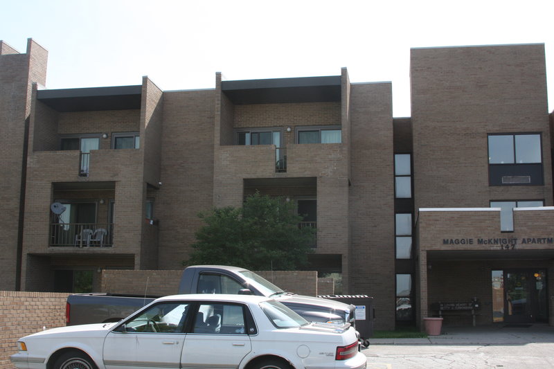 Maggie McKnight is a three-story apartment complex with 25 one-bedroom, apartments. Five apartments are designed for physical accessibility by mobility impaired residents and are located on the ground floor. An elevator and stairs gives access to all upper floors.